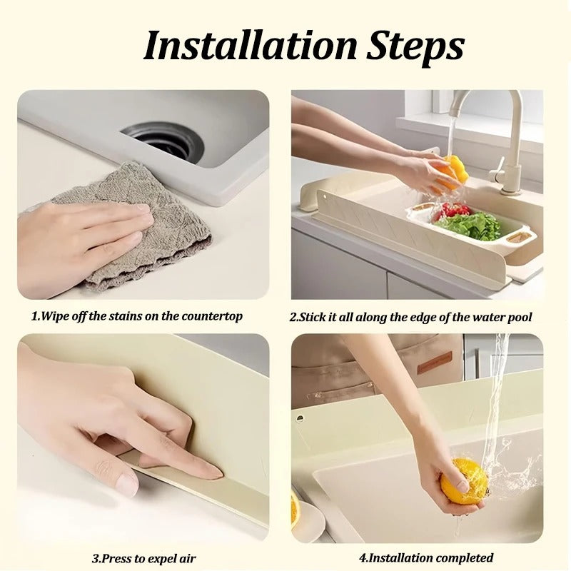 🚿💧 حاجز السيليكون الذكي ضد تسرب الماء – الحل العصري لحماية مطبخك وحمامك من الفوضى ! (TK)