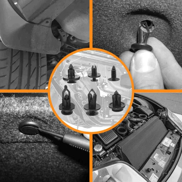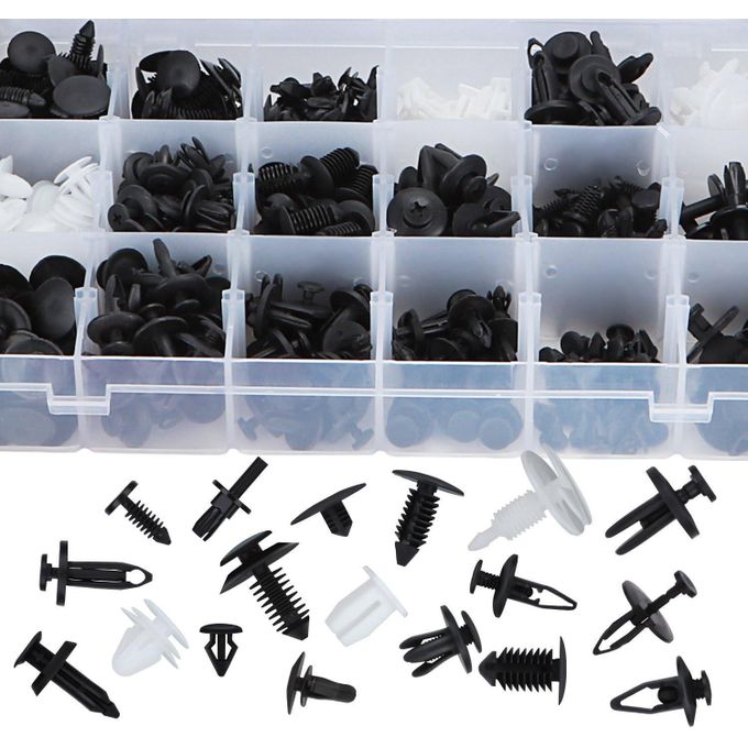 احصل على طقم شامل من مشابك التثبيت المصمّمة من البلاستيك المتين، لتلبية احتياجاتك الإصلاحية وتجميلية للسيارة. الطقم يحتوي على 18 نوعًا مختلفًا من المشابك، مناسبة لتثبيت الألواح، الكسوات، الصدامات، واقيات الطين، وغيرها من أجزاء الجسم