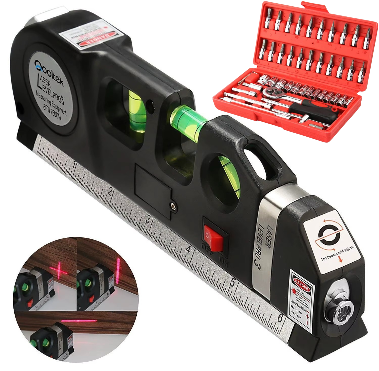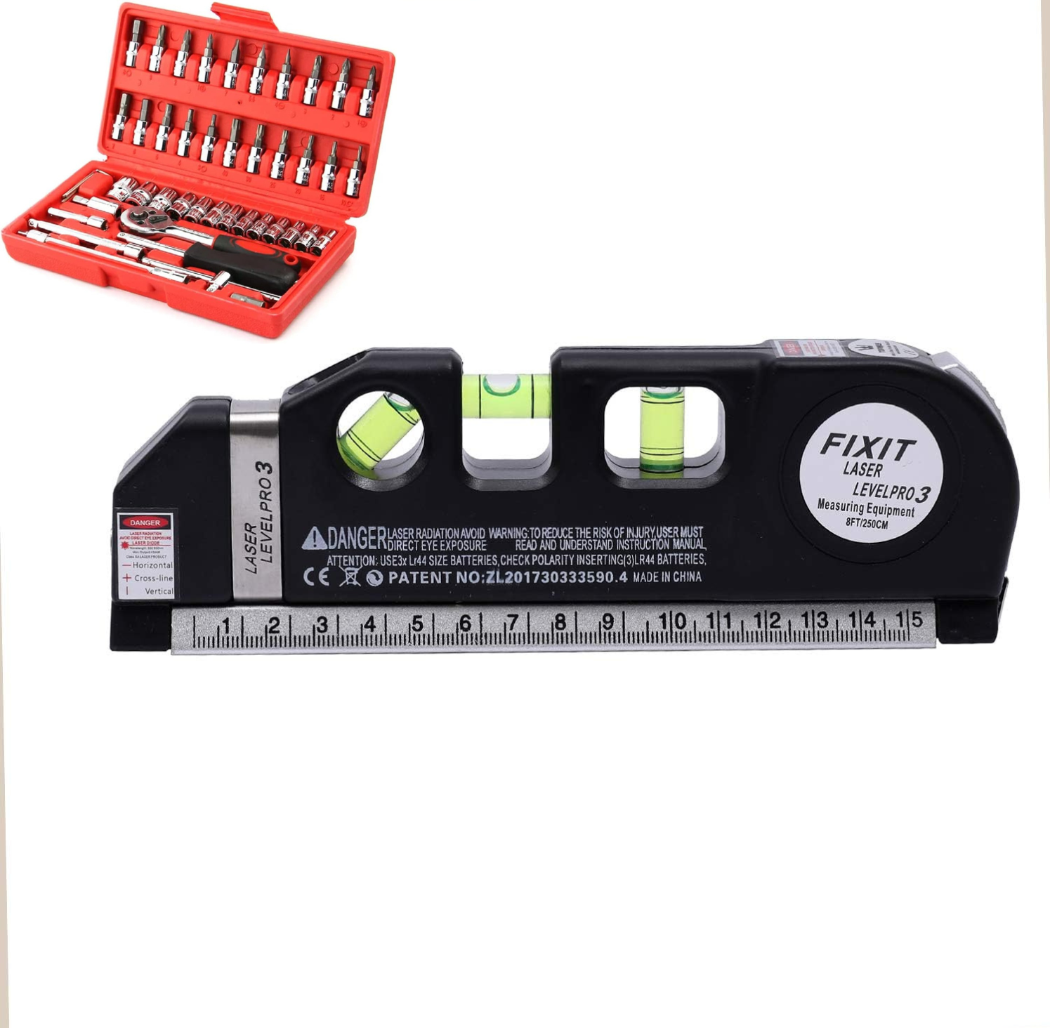 عرض مزدوج: ميزان ليزر متعدد الوظائف + علبة مفاتيح 46 قطعة