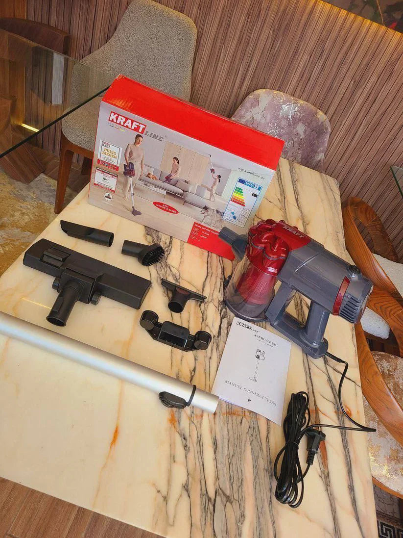 12 accessoires inclus : brosses pour sol, accessoires pour tissus, coins, etc.