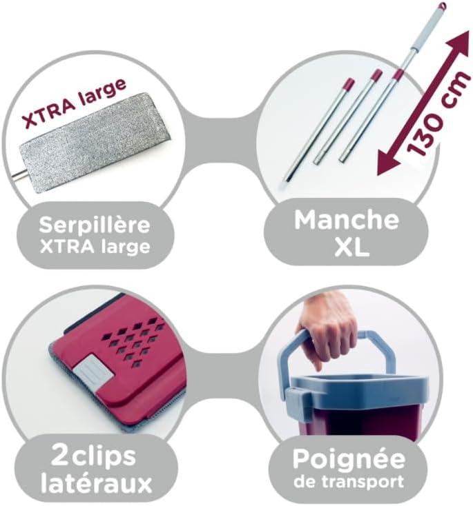 Dites adieu aux efforts inutiles pour nettoyer vos sols ! Ce balai-serpillère astucieux, accompagné de son seau d’essorage, est conçu pour épouser chaque angle de votre pièce grâce à sa tête pivotante à 360° — parfaite pour les coins difficiles à atteindre. Son système d’essorage rapide vous évite de mettre les mains dans l’eau sale. Le lot inclut 4 serpillères microfibre lavables, ultra-douces, résistantes aux rayures et aux mauvaises odeurs. Compact et léger, ce matériel vous permet un nettoyage efficace, sans contrainte. L’essorage se fait directement dans le seau, économisant espace et temps.