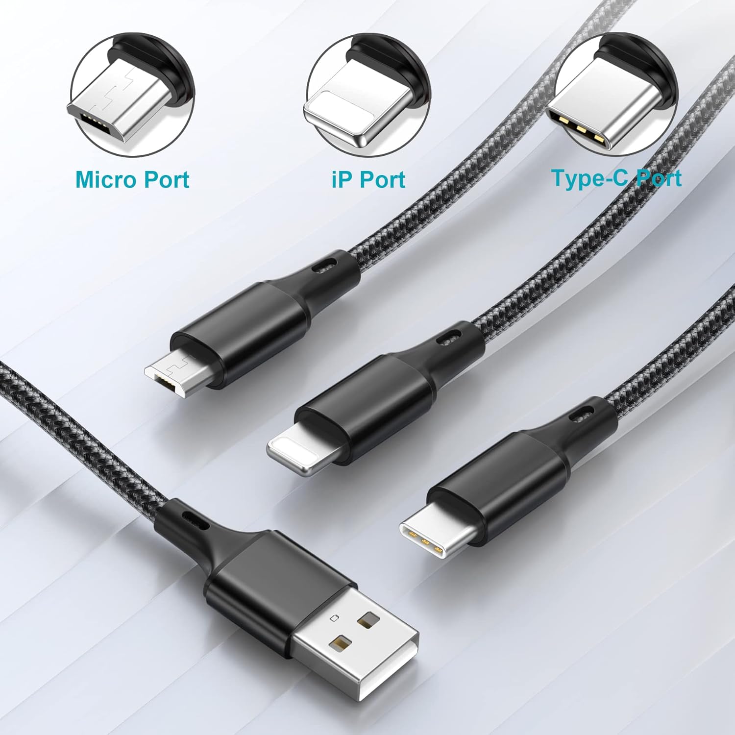 Trois connecteurs en un seul câble (Type-C, Micro-USB, Lightning)