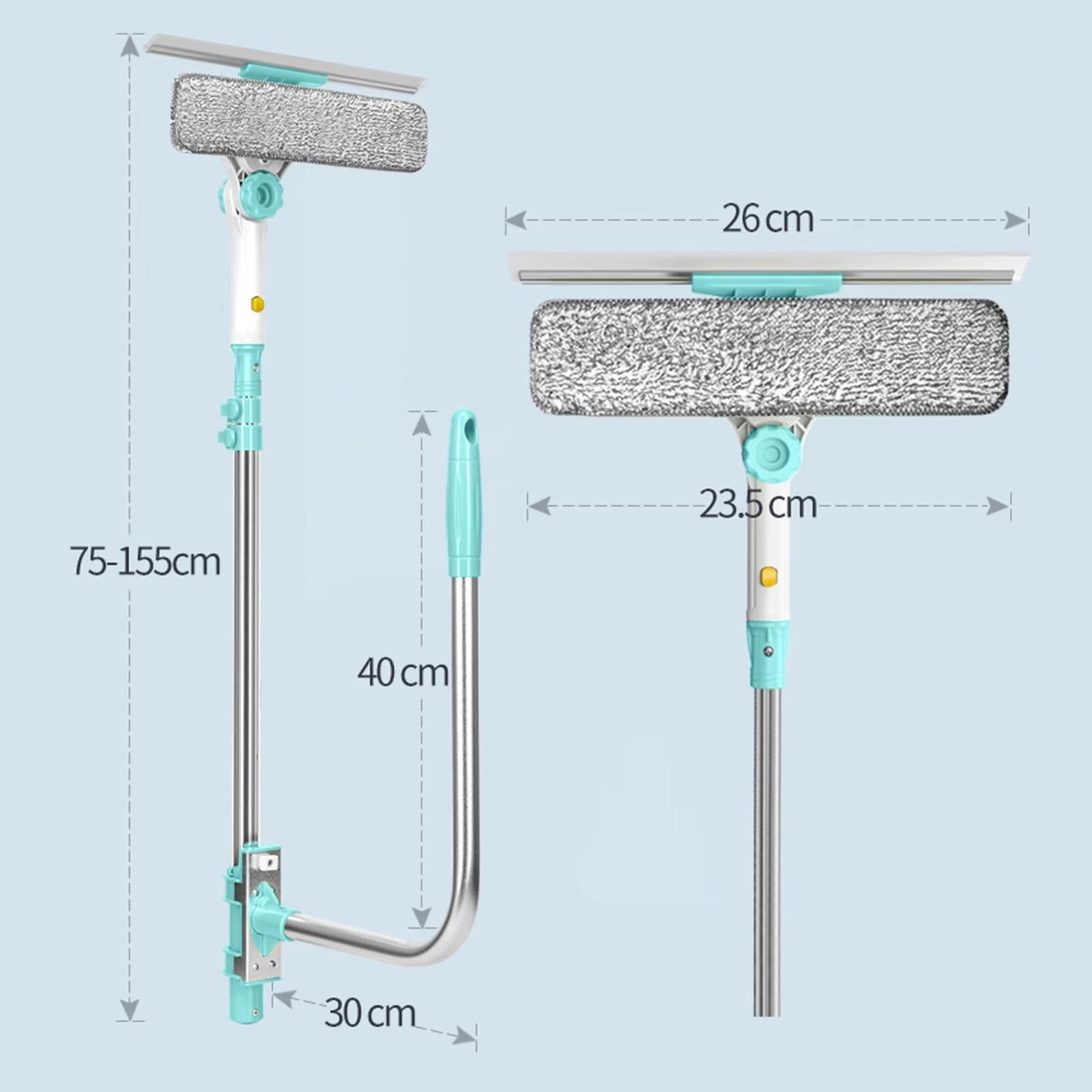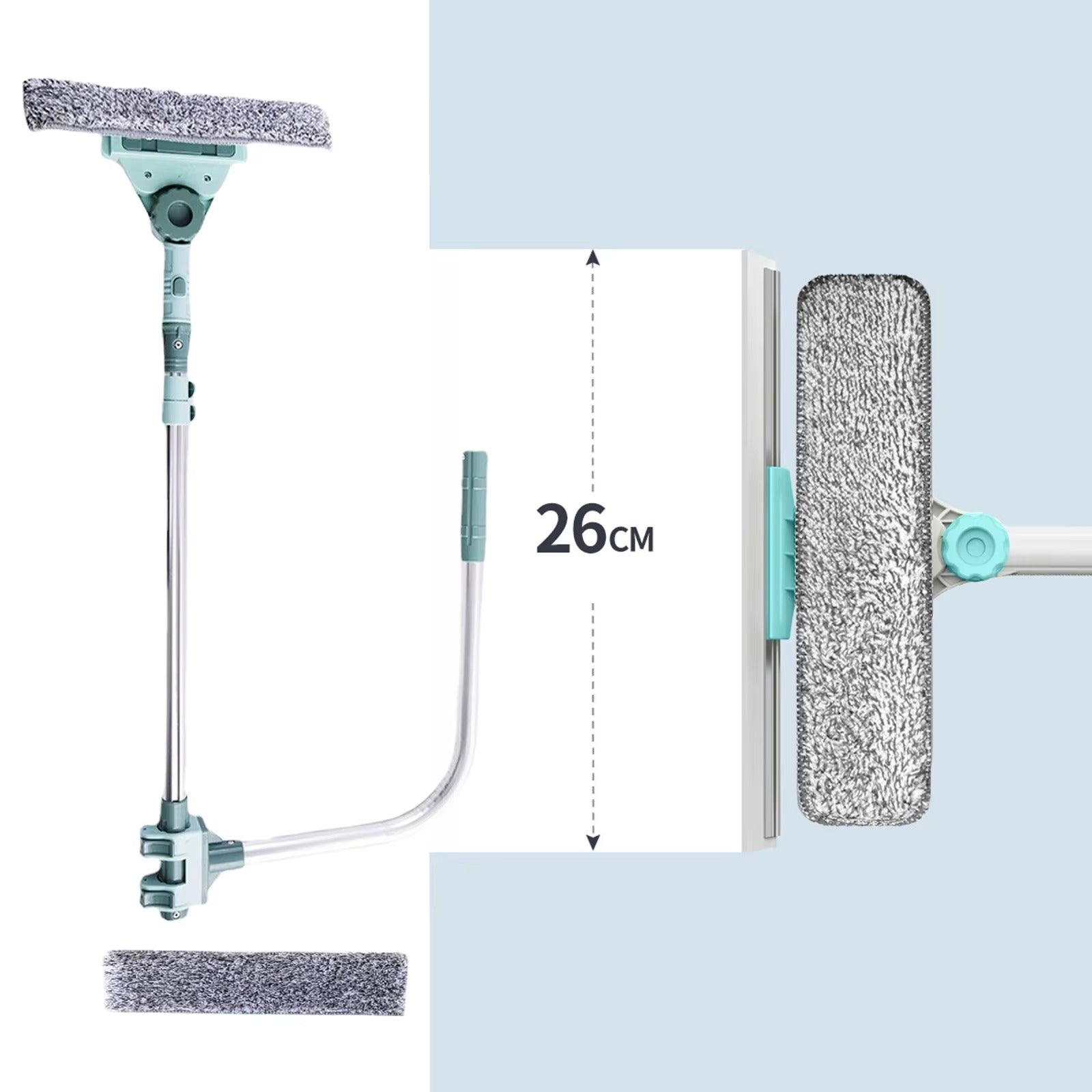 Avec un manche télescopique réglable, vous pouvez ajuster la longueur selon vos besoins : que ce soit pour les fenêtres hautes, les plinthes, les coins du plafond ou même sous les meubles. Sa tête 2-en-1 combine une brosse douce pour dépoussiérer et un racloir solide pour gratter les saletés tenaces, garantissant un nettoyage complet et en profondeur.