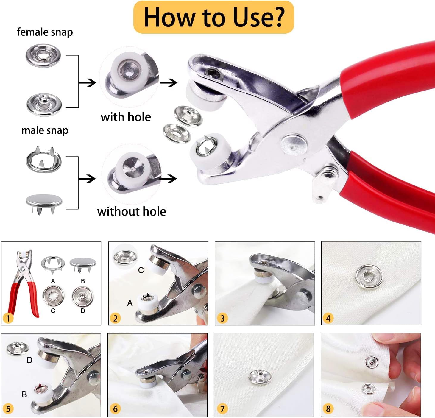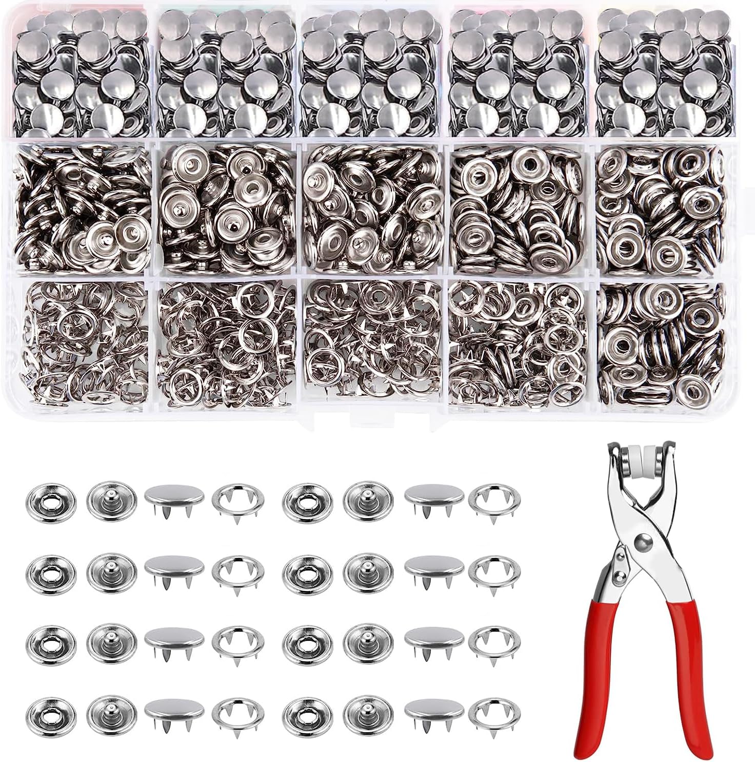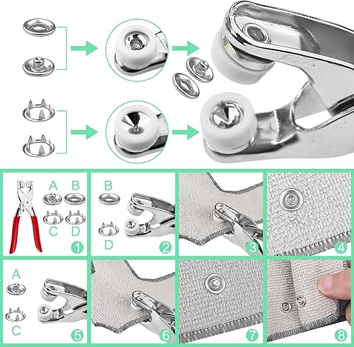 Un kit complet pour vos projets couture et DIY : 200 boutons-pression résistants en métal et une pince solide pour les poser facilement, sans besoin d’outil supplémentaire. Parfait pour réparer ou personnaliser vêtements, sacs, accessoires, ou bricolages maison.